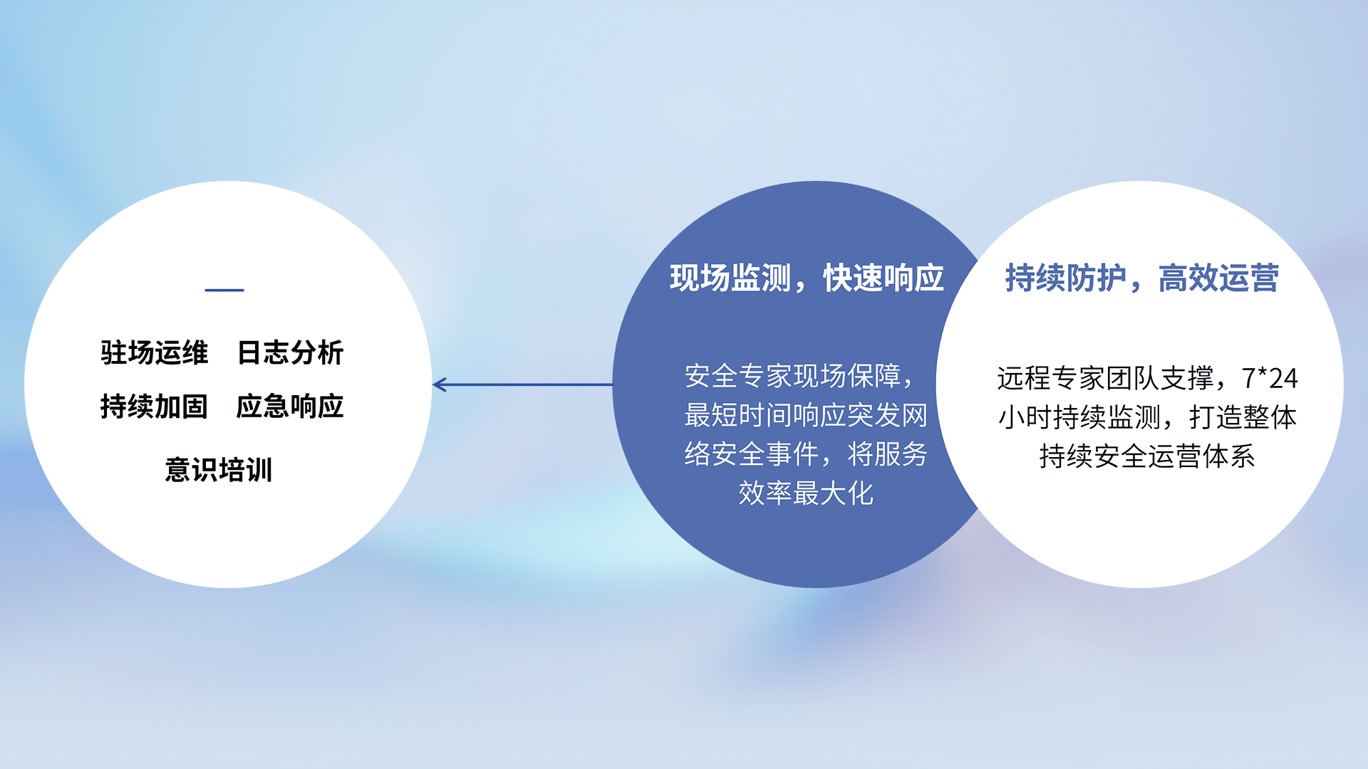 针对客户行业特性,,,,提供专属的一站式安全管理服务,,,,帮助客户全面感知网络空间威胁,,,通过安全专家的线上、、、线下防护支持,,,,实现风险闭环,,,,将安全保障常态化,,为客户打造常态化安全运维运营服务。。。